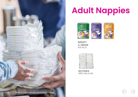 Adult Nappies INFINITY A-GRADE SIZE: M,L,XL SECONDS SIZES: S,M,L,XL,XXL 6 NAPPY CHAPPY BRAND CATALOGUE | 2023