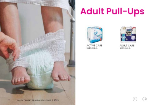 Adult Pull-Ups ACTIVE CARE ADULT CARE SIZES: M,L,XL SIZES: M,L,XL 7 NAPPY CHAPPY BRAND CATALOGUE | 2023